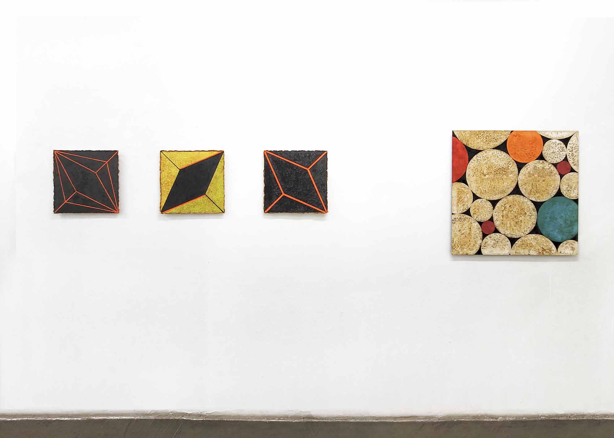 The pictures are incisive and concentrated, but it is in their reduction that their incredible spiritual power lies. The hard-edged contours reinforce the structures of the color fields and evoke a suggestive, meditative effect. Guided by the geometry of the picture, the viewer becomes immersed in expanding organic surfaces and textures. Although the artworks are very closely connected to nature, they are not intended to imitate it. What they all share in common is a sense of sophistication and freedom in the combination. The materiality used detaches the composition from its flatness: light wanders, shadows change, and the sense of space deepens. Even cracks and explosions become moments of artistic creation.